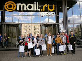 При входе в офис нашей группе раздали бейджи с надписью "Guest" и паролем от гостевого Wi-Fi. Затем к нам подошел экскурсовод, и мы начали свое странствие по новому офису Mail.ru.