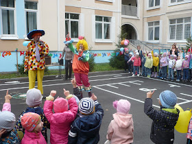 В структурном подразделении №4 «Солнышко» был организован с 7.00 – 8.15 традиционный праздничный прием. У калитки детского сада встречала администрация и клоуны с воздушными шариками. Они поздравляли воспитанников и их родителей с началом нового учебного года.